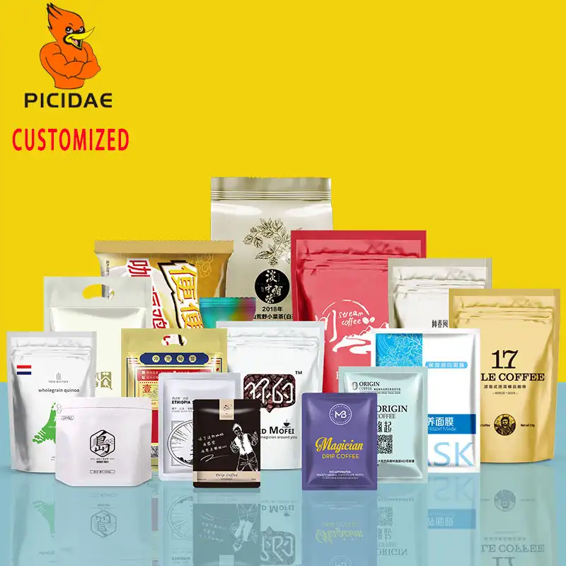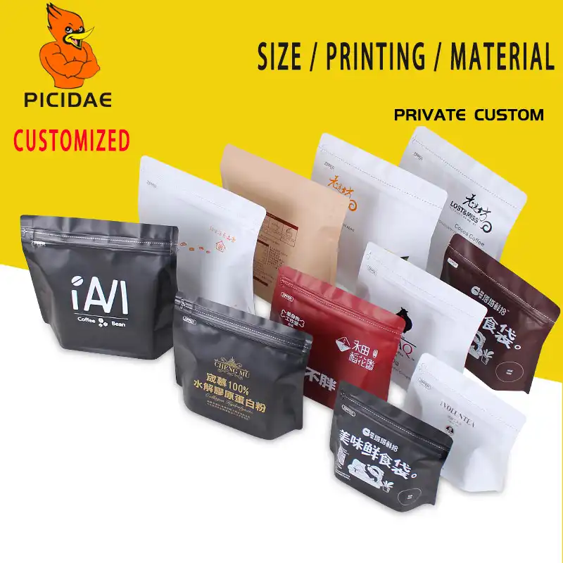 Kemasan Makanan Kustom Tas Gaya Pola Kraft Kertas Aluminium Foil Komposit Film Plastik Fleksibel Sampel Kopi Sendiri Logo Cetak Tas Penyimpanan Aliexpress